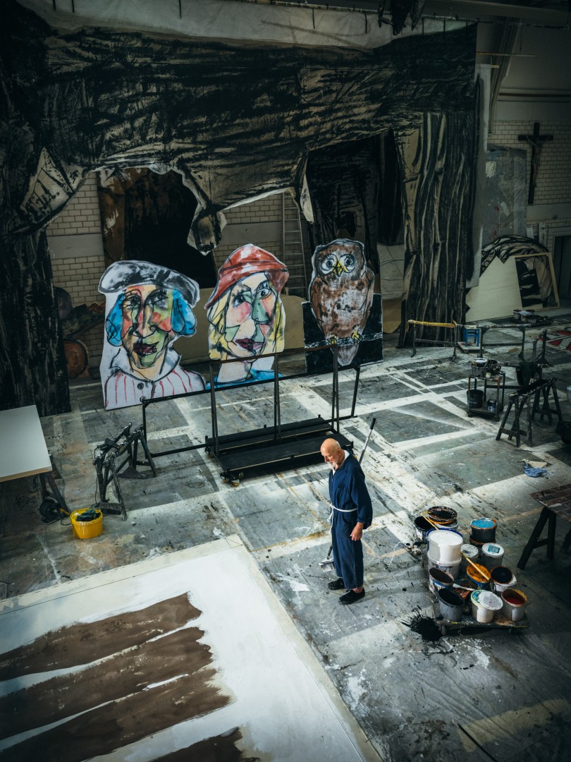 At the age of 80, the grand seigneur of German painting, Markus Lüpertz decided to make an opera, he does everything himself: Direction, set design and costume. Two days in Meiningen, a small town with a big theater that was once was world famous, at least a little bit.