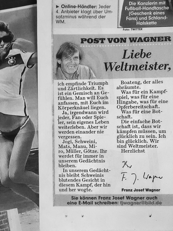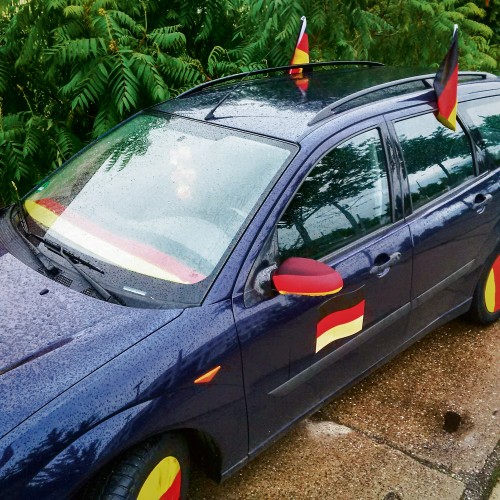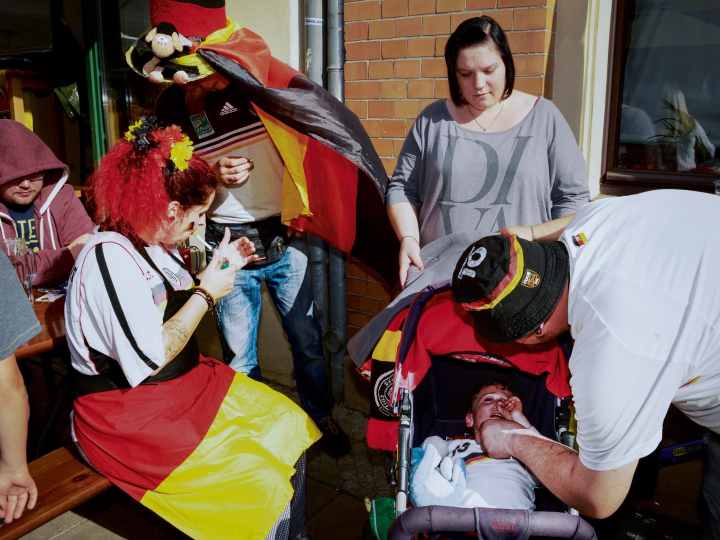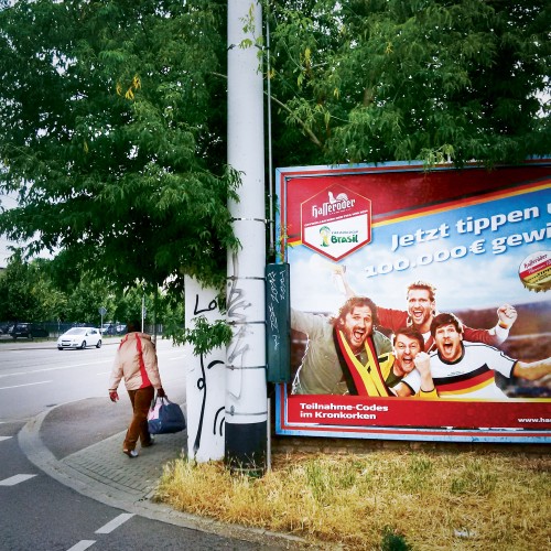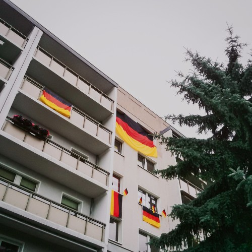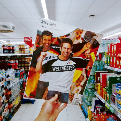 During my studies I worked for the local newspaper. It was 2014 and the soccer World Cup in Brasil took place when I was asked to photograph public screening events. I got my first smartphone the same year. With the crappy camera, which only took square pictures, I documented everyday scenes and started a blog on a daily column in Germanys most notorious tabloid. Finally, when Germany won the cup, all came together and I did kind of a fanzine. Four years later during the next World Cup I started an abstract Still Life series of everyday products sold in German national colors.