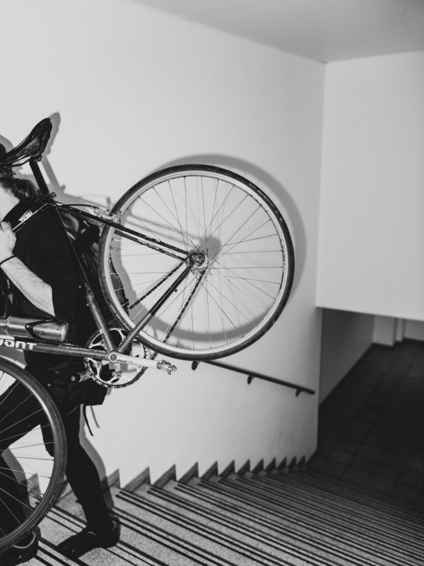 7-9/ Martin works as a bicycle courier in Dresden. He has always enjoyed cycling and - after dropping out of university five years ago - has turned his hobby into a profession.