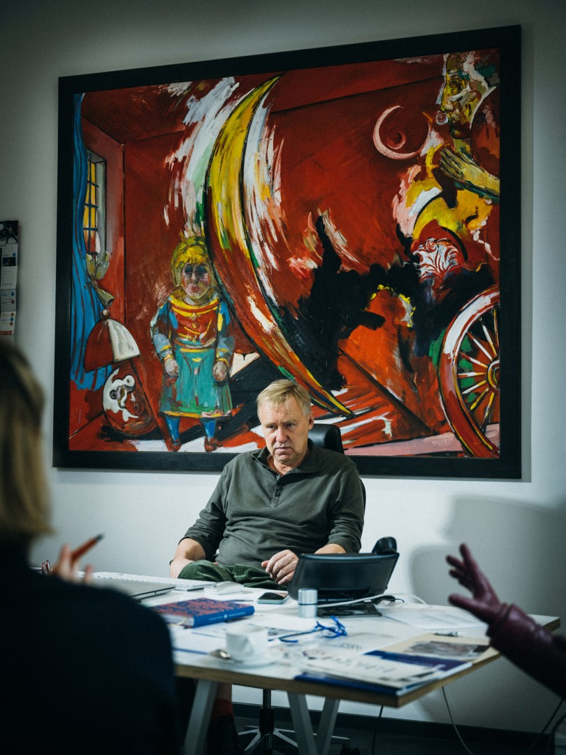 At the age of 80, the grand seigneur of German painting, Markus Lüpertz decided to make an opera, he does everything himself: Direction, set design and costume. Two days in Meiningen, a small town with a big theater that was once was world famous, at least a little bit.