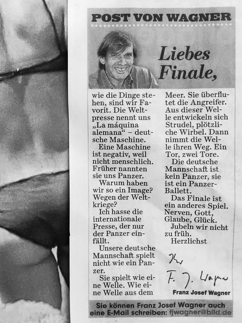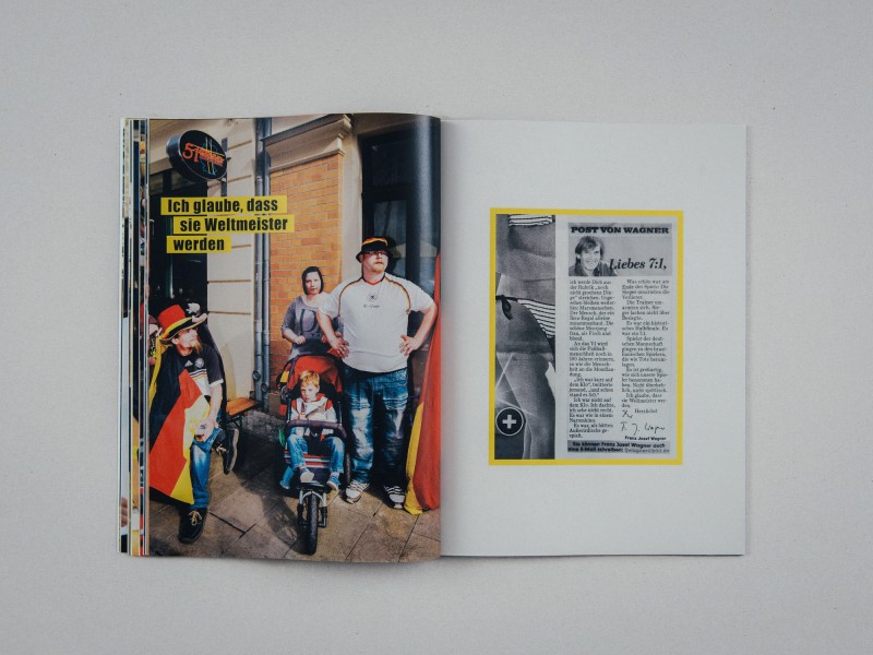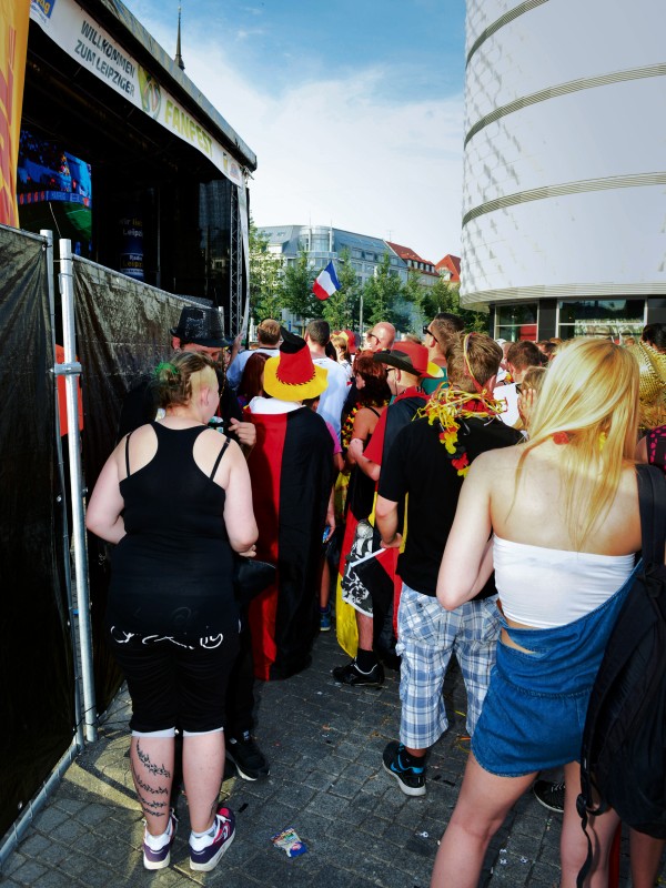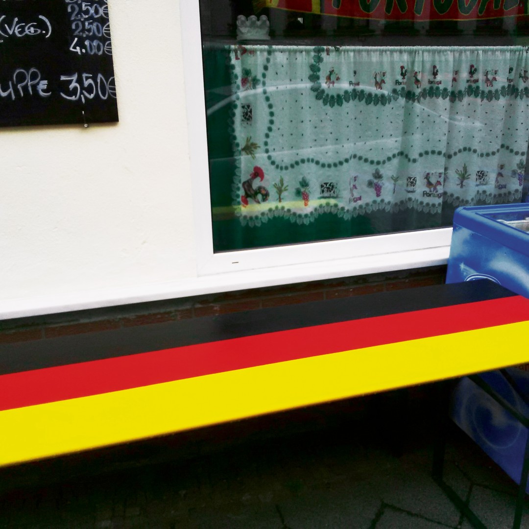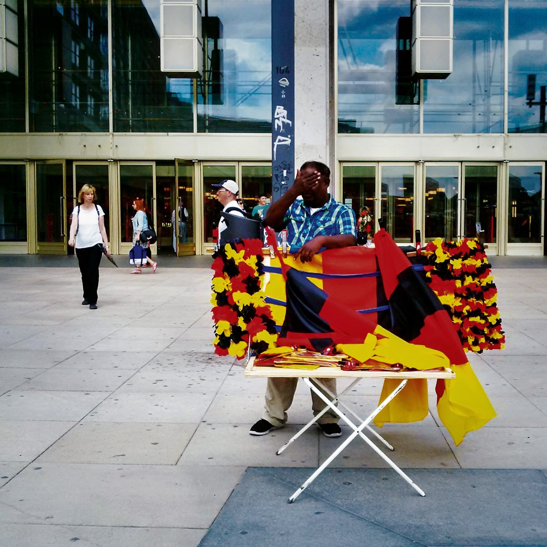 During my studies I worked for the local newspaper. It was 2014 and the soccer World Cup in Brasil took place when I was asked to photograph public screening events. I got my first smartphone the same year. With the crappy camera, which only took square pictures, I documented everyday scenes and started a blog on a daily column in Germanys most notorious tabloid. Finally, when Germany won the cup, all came together and I did kind of a fanzine. Four years later during the next World Cup I started an abstract Still Life series of everyday products sold in German national colors.